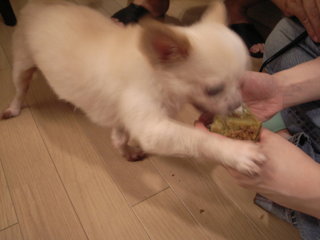 ドッグケーキをもらった、まめたろ。