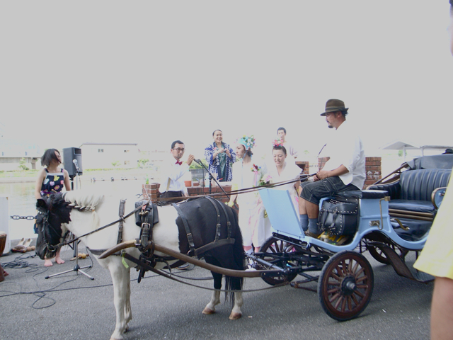 馬車で登場。