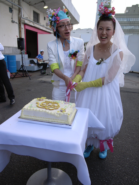アーティストでデザイナーの津山さんと、パン工房のゆうこりんさんの結婚パーティー*